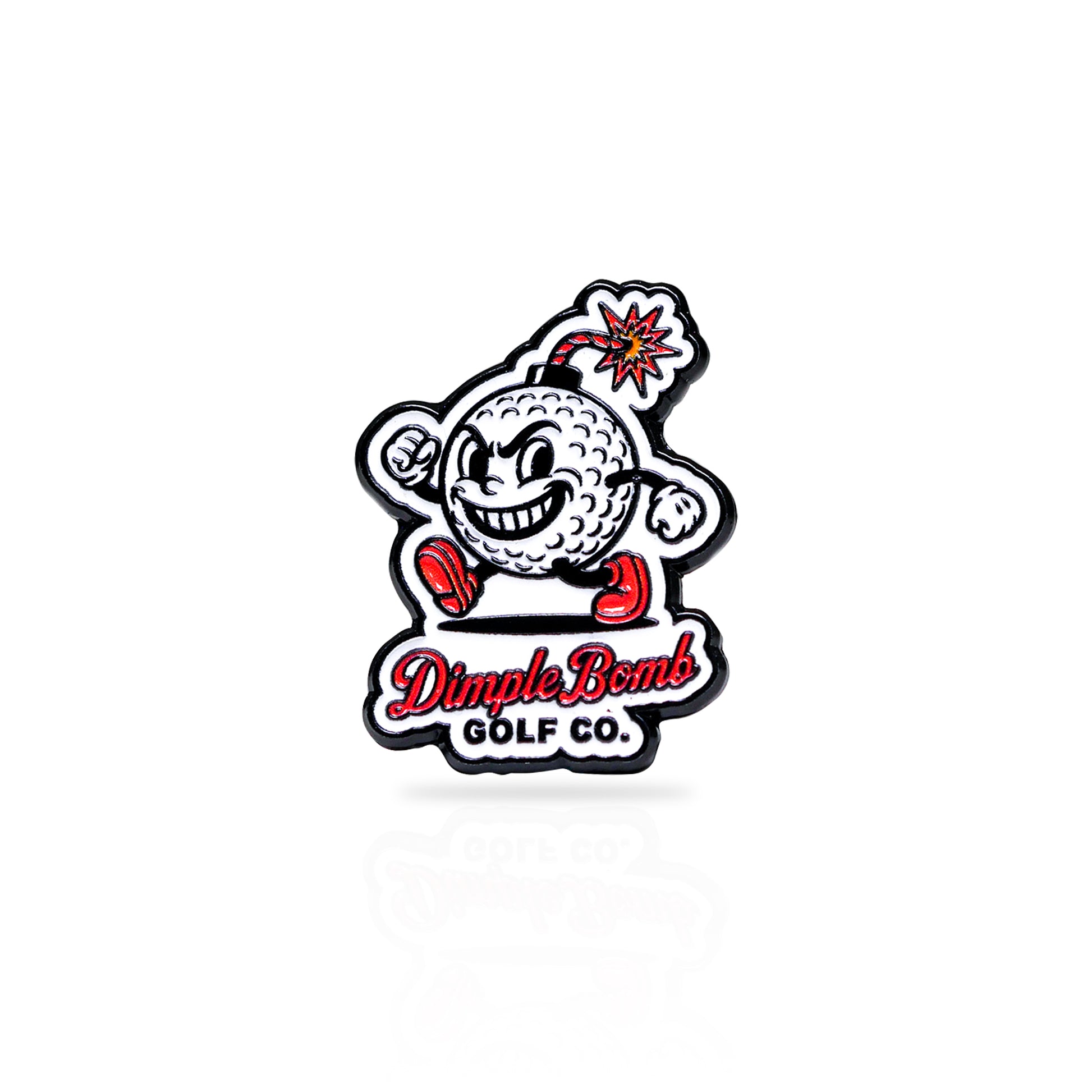This bold enamel ball marker features Mr. Dimple in all his mischievous glory, grinning, stomping, and fully fused-up for chaos on the green. Whether you're draining birdies or blowing up your short game, this little guy is along for the ride.